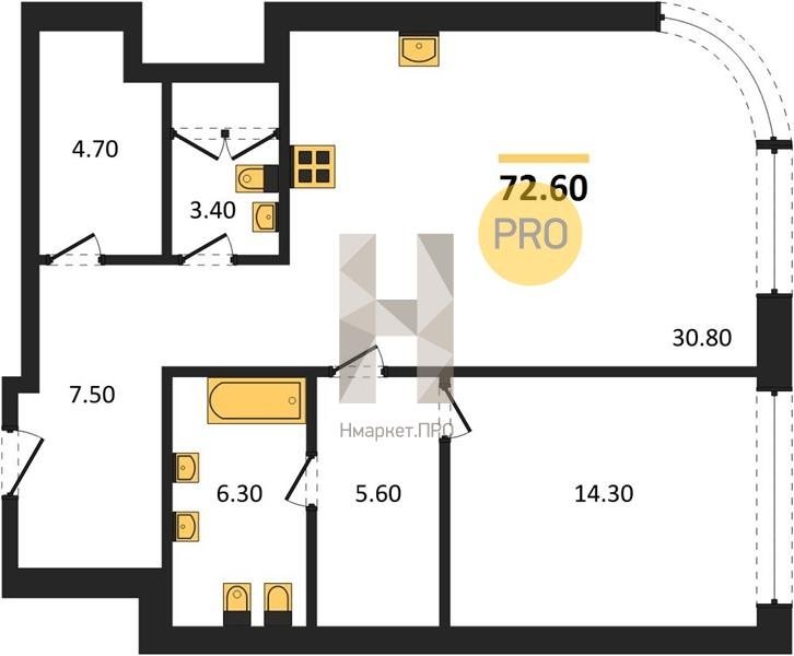 Площадь от 64.8 м2