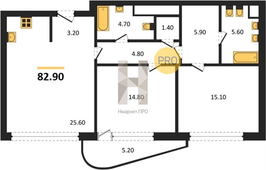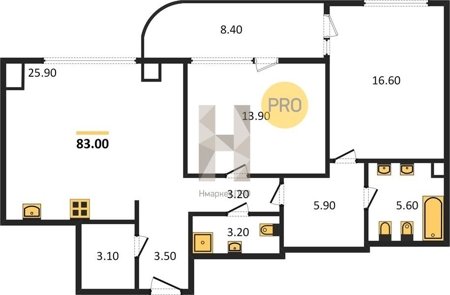 Площадь от 82.9 м2