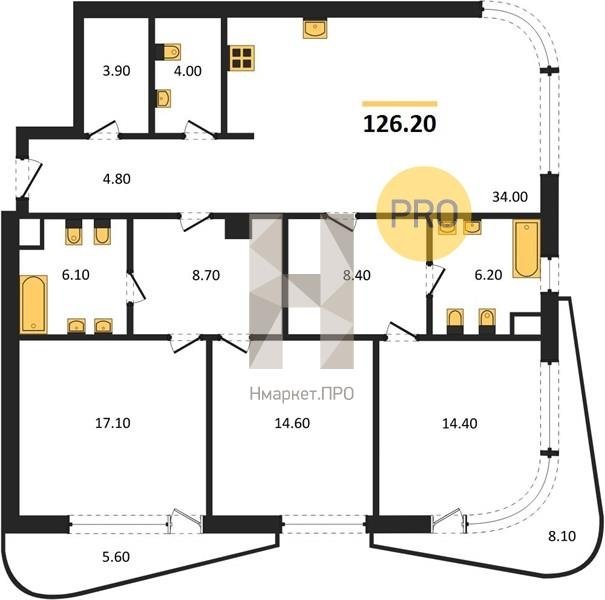 Площадь от 125.3 м2
