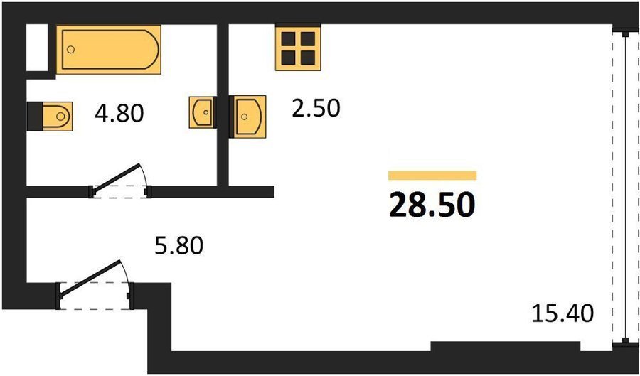Площадь от 28.4 м2